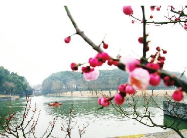 虽然持续阴雨,但外出踏青游园的市民还是不少。方塔园中的红梅与湖水相映衬的景致,也别有一番韵味